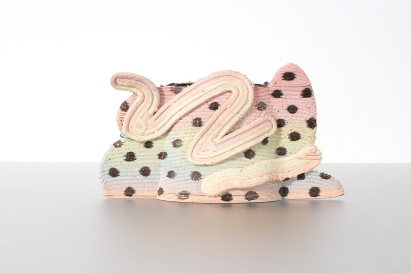 "Memory Palace in Fast and Loose," a unique vessel in porcelain, glaze, luster, and PVA plastic. Designed and made by Jolie Ngo, USA, 2022.