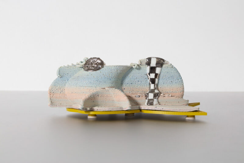 "Memory Palace in Providence Summer," a unique vessel in porcelain, glaze, luster, and PVA plastic. Designed and made by Jolie Ngo, USA, 2022.