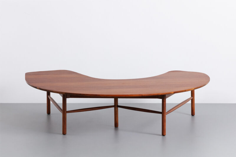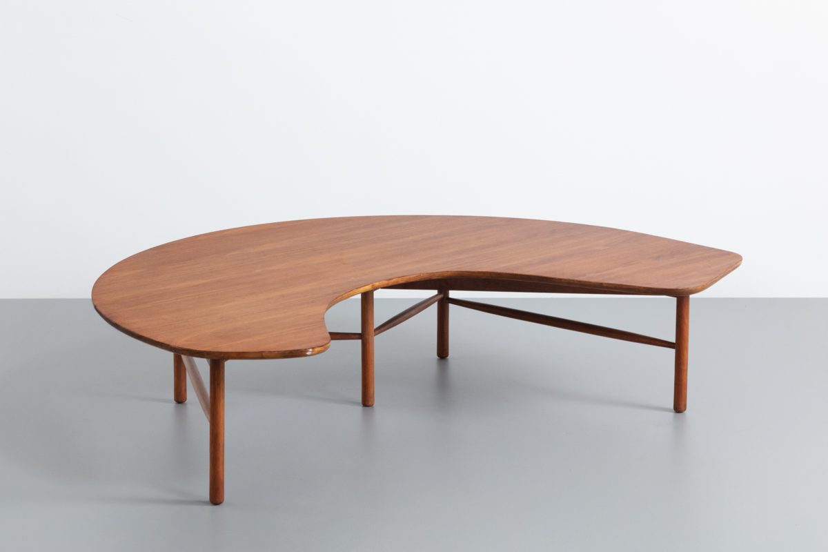 This wall or ceiling version of Greta Magnusson Grossman’s famous Cobra lamp was made by Ralph O. Smith and initially sold at Barker Brothers. With the success of Grossman’s designs, however, the father-and-son team based in Burbank grew to be a retailer in its own right. The lamp was then advertised as a direct partnership between Ralph O. Smith Modern Lamps and Fixtures, and Magnusson Grossman Design. Originally called Fixture No. 905, this model Cobra could be swiveled to a vertical position for indirect light or to light wall works, or turned downwards to serve as a desk light.