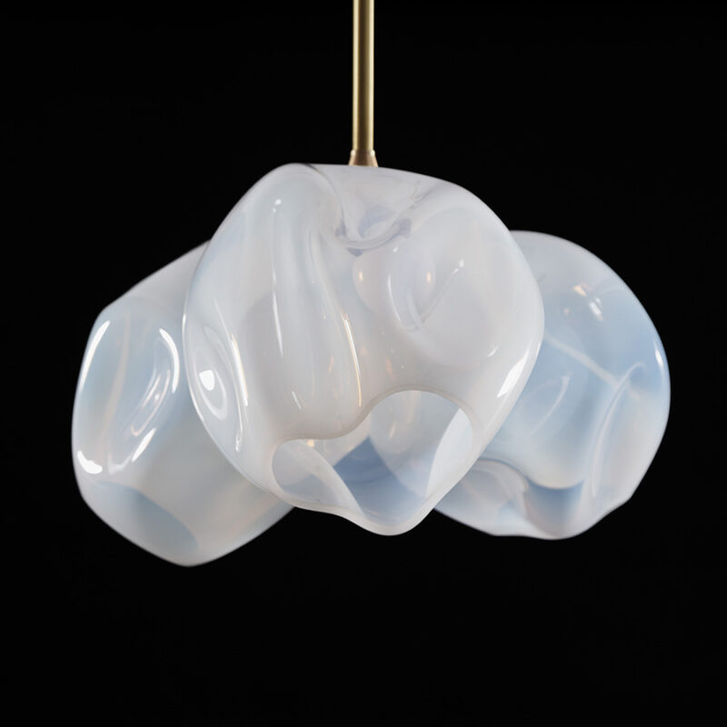 Jeff Zimmerman. Dented Multi-Pendant. Illuminated Hanging Sculpture. 2023. Glass and brass.