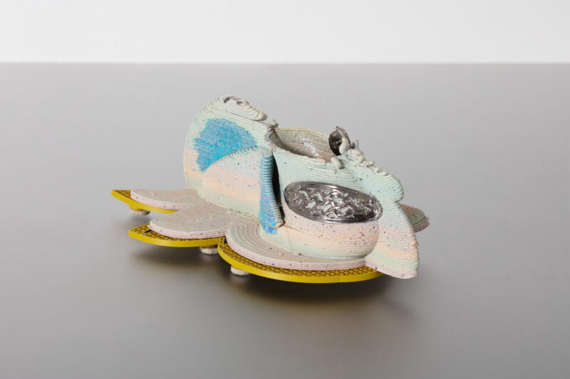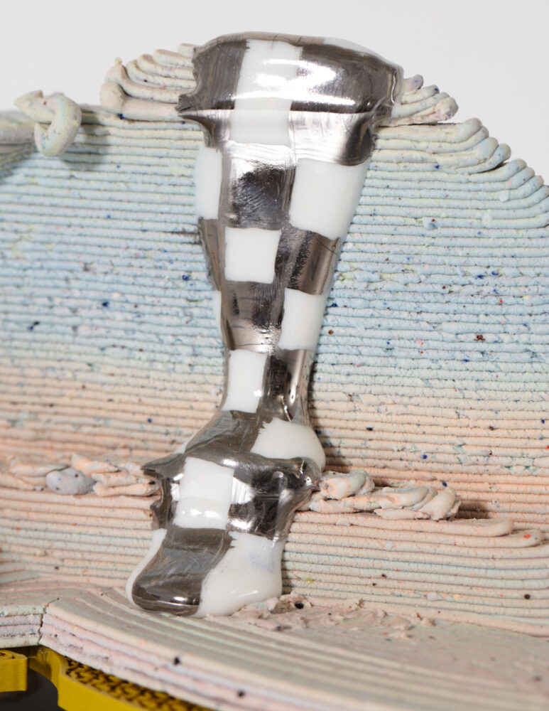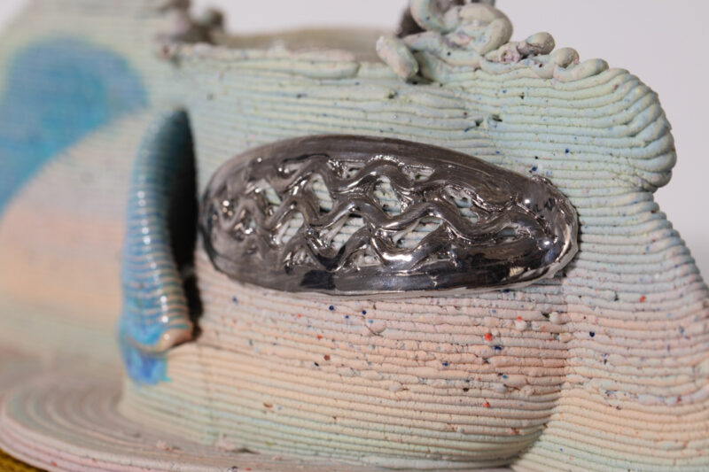 "Memory Palace in Fast and Loose," a unique vessel in porcelain, glaze, luster, and PVA plastic. Designed and made by Jolie Ngo, USA, 2022.