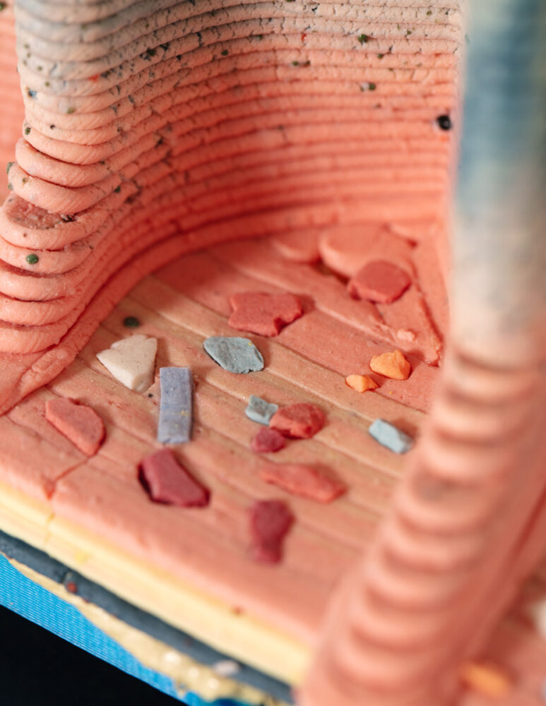 "Memory Palace in Sea Slugs," a unique vessel in porcelain, glaze, luster, and PVA plastic. Designed and made by Jolie Ngo, USA, 2022.