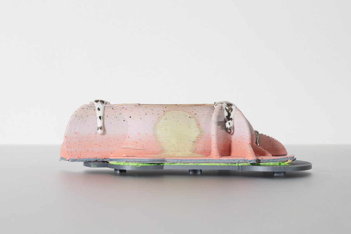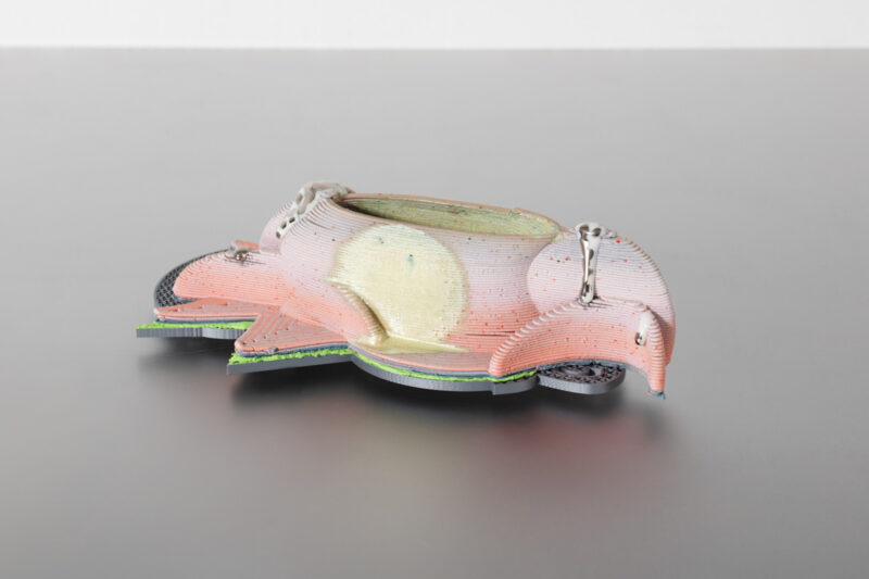 "Memory Palace in Providence Summer," a unique vessel in porcelain, glaze, luster, and PVA plastic. Designed and made by Jolie Ngo, USA, 2022.