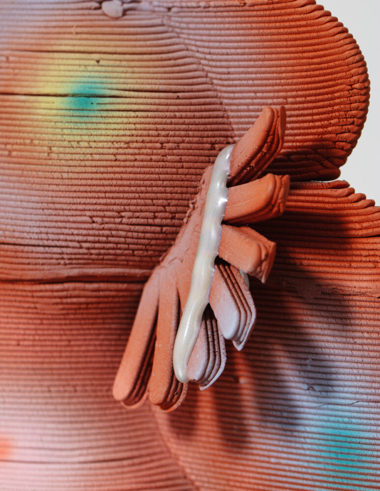 "Memory Palace Vessel in Distinctive Atmosphere," a unique vessel in terracotta. Made and designed by Jolie Ngo, USA, 2023.