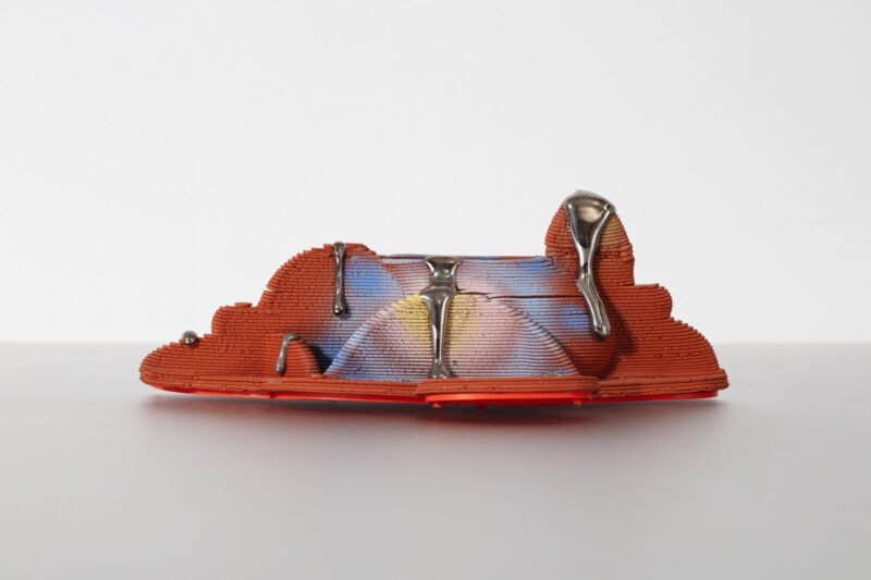 Glazed ceramic, PETG plastic, luster, and cast bronze