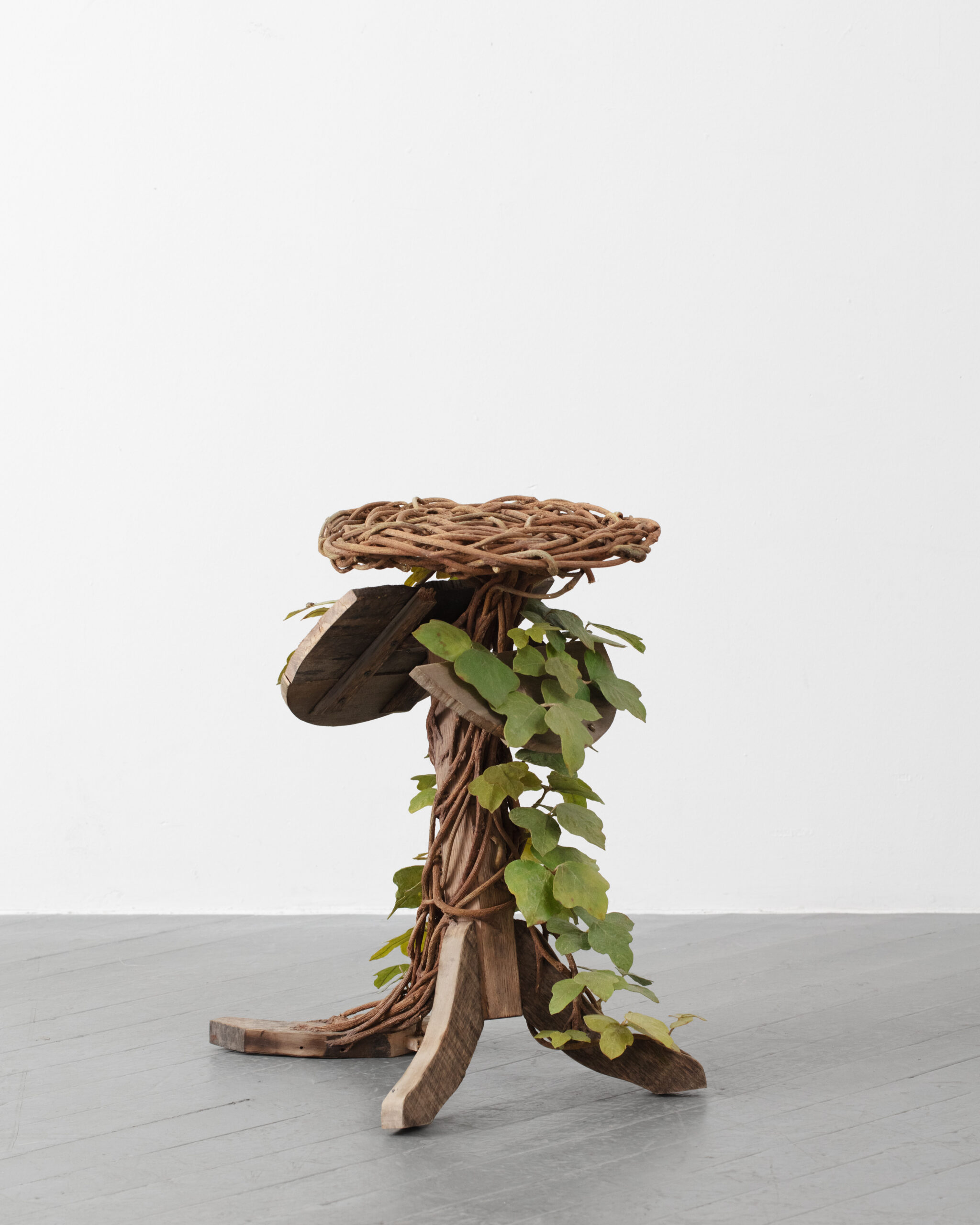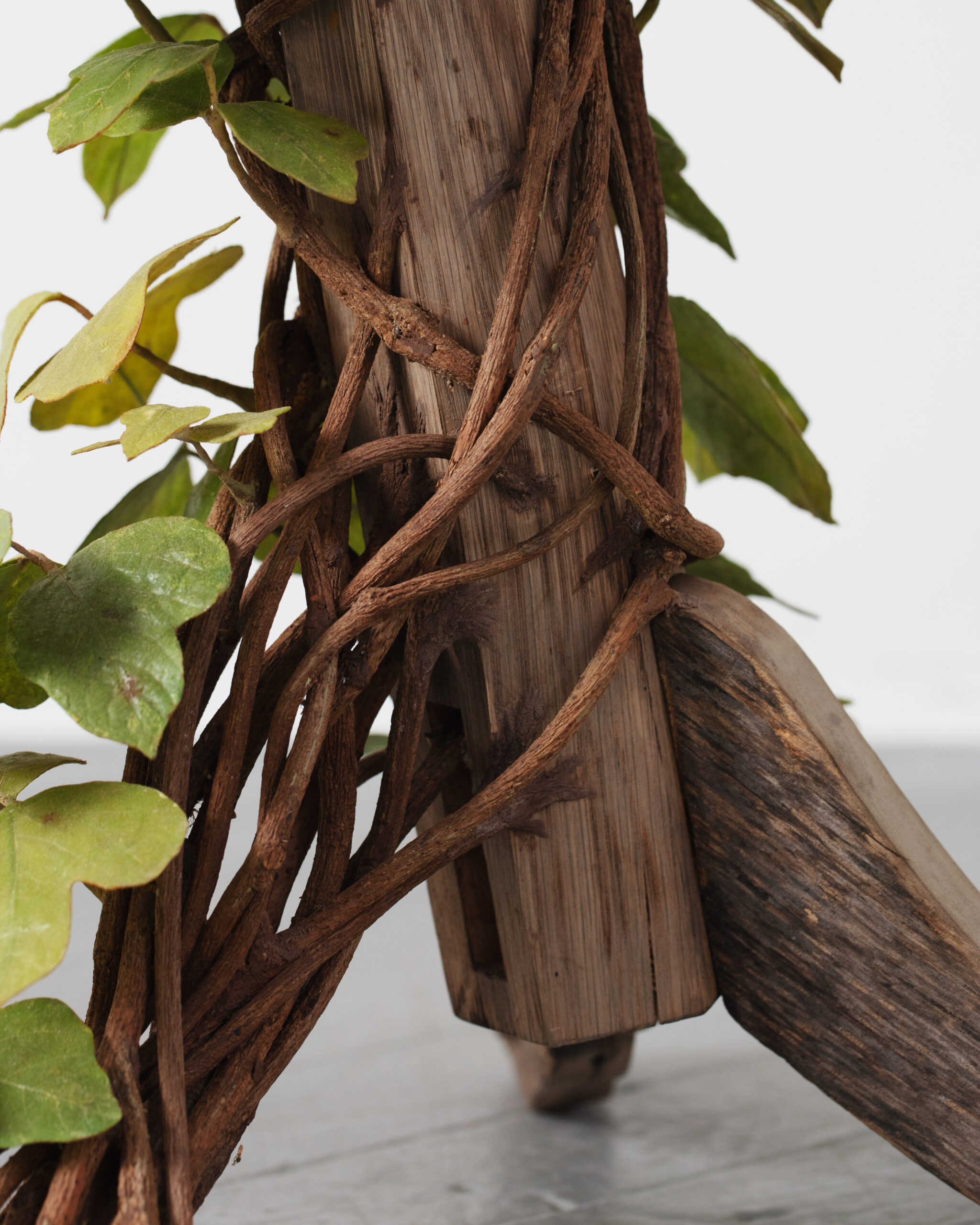 Wood, kudzu vine, cloth, epoxy, wire, and paint