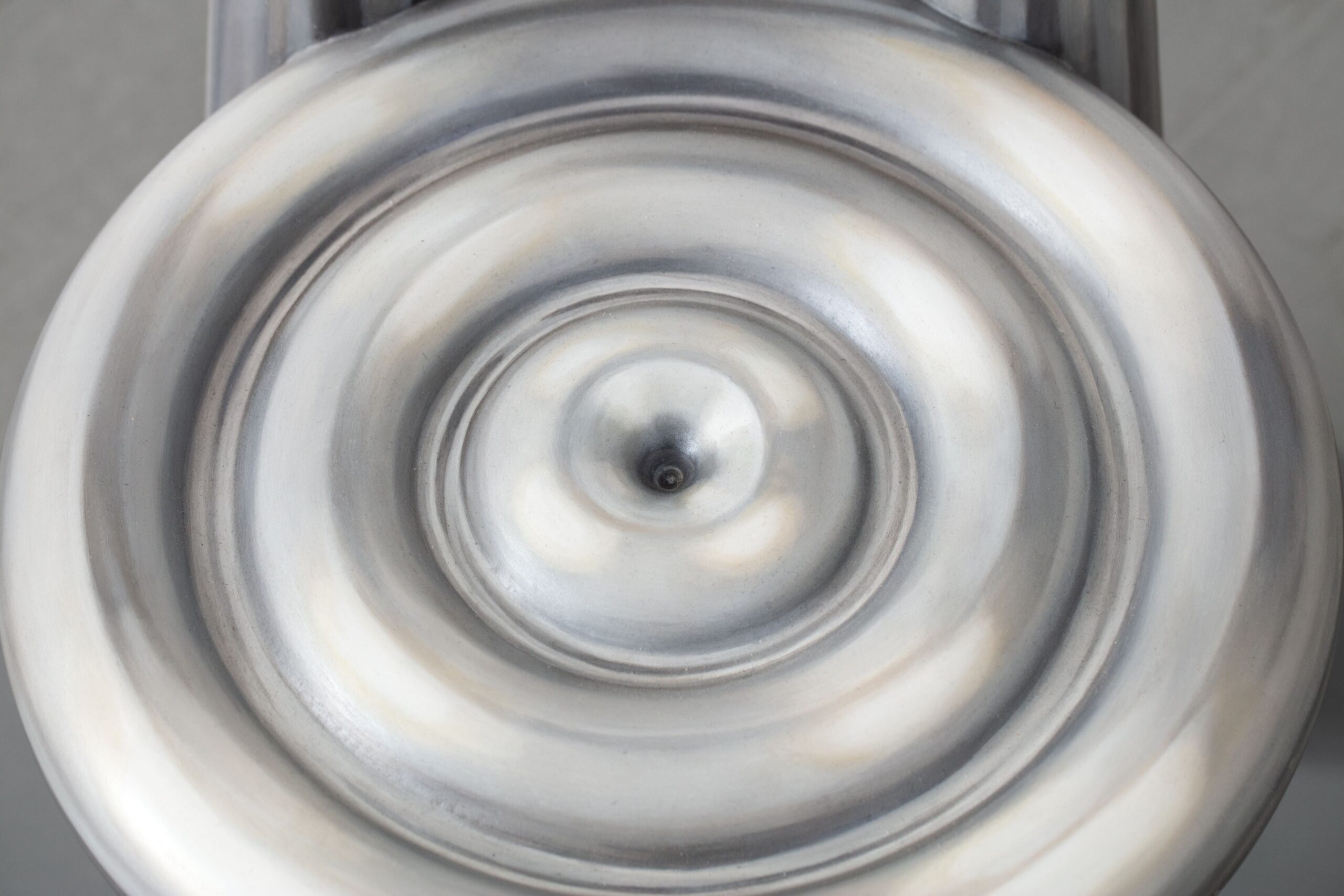 "Burl Chair Bust: Seat" in wood, MDF, paper clay, epoxy, and douglas fir slices with steel (post) and plywood (base). Designed and made by Joyce Lin, USA, 2023.
