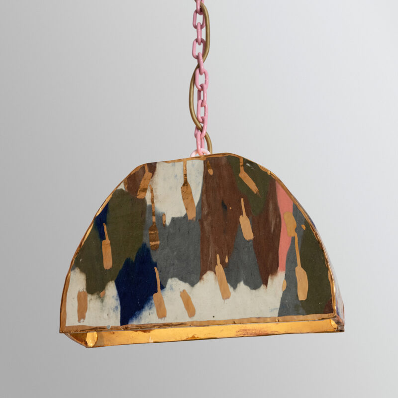 Unique slab hanging lamp in hand-built and glazed ceramic. Designed and made by Katie Stout, USA, 2019.
