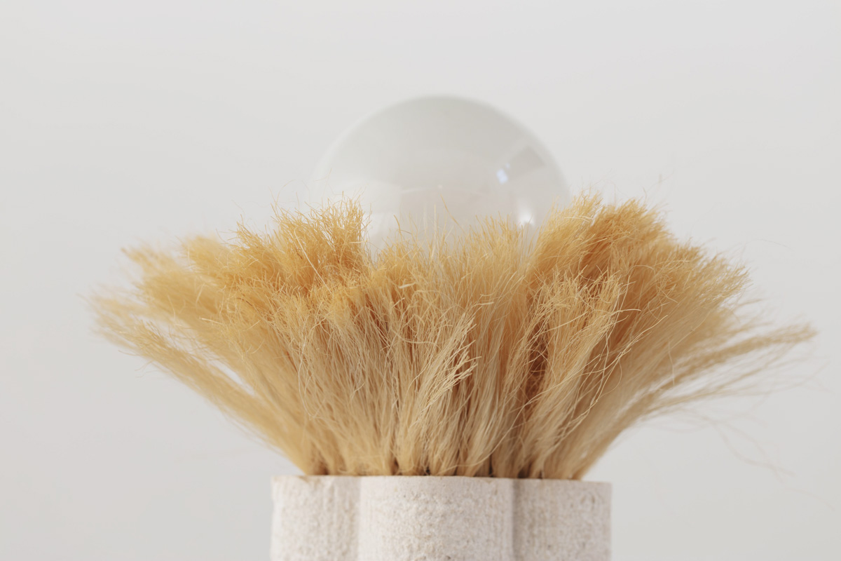 Stone, terracotta, and raffia