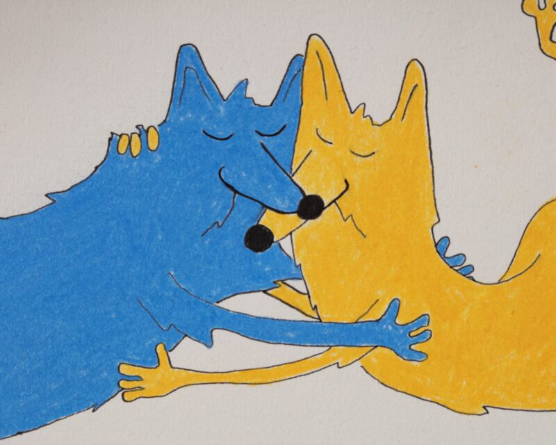 Paint and pen on plywood with walnut frame