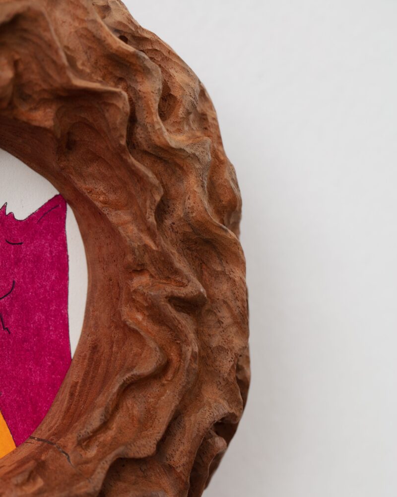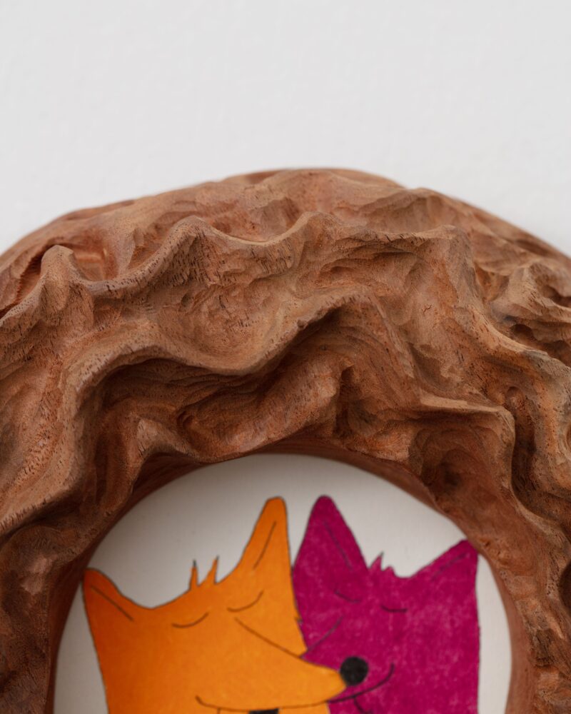 Paint and pen on plywood with walnut frame
