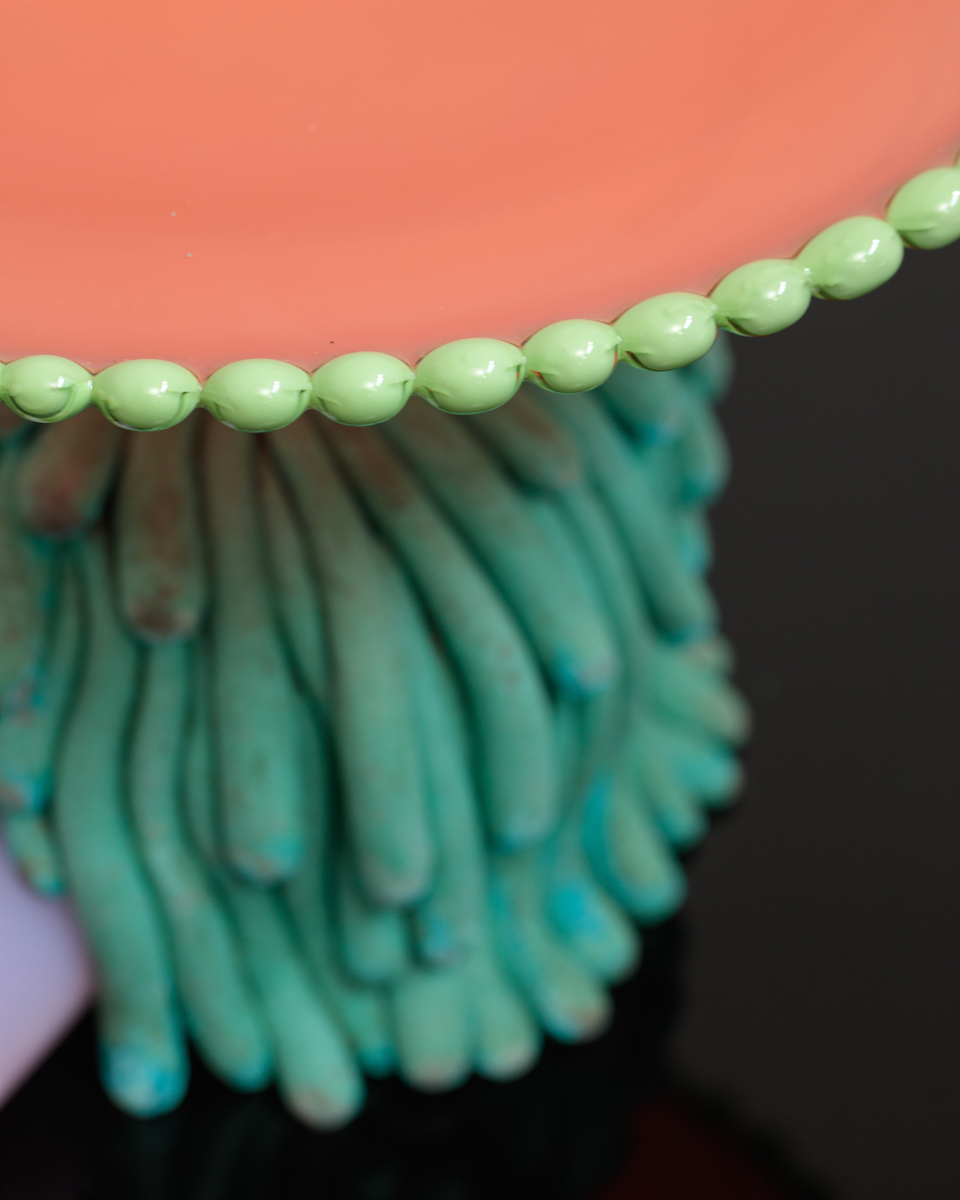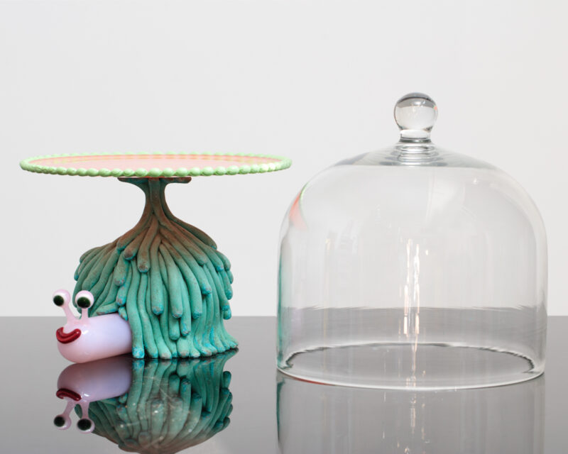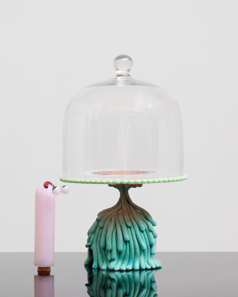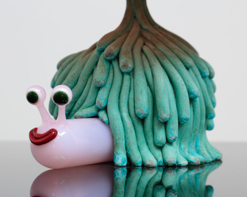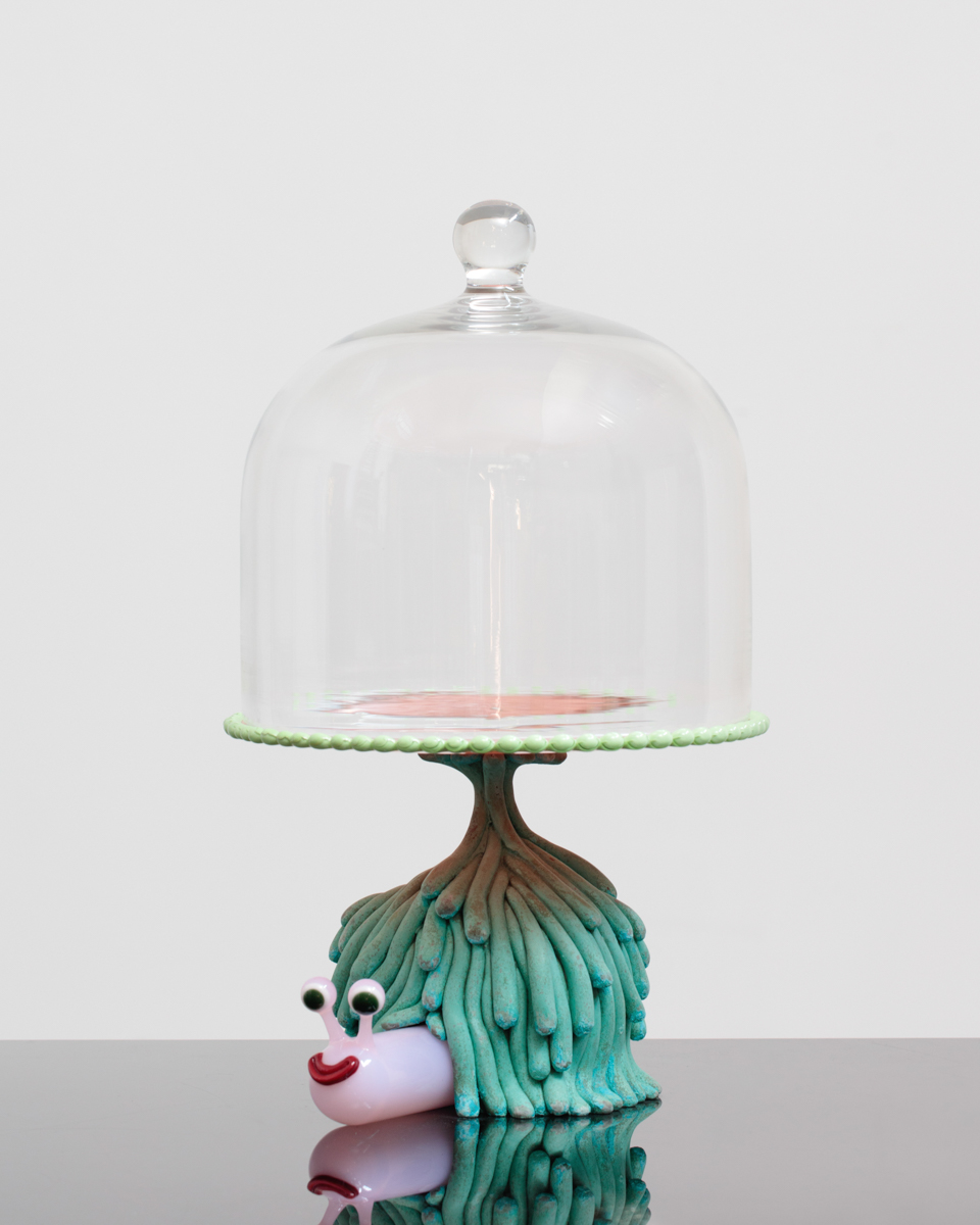Patinated cast bronze, blown and sculpted glass.