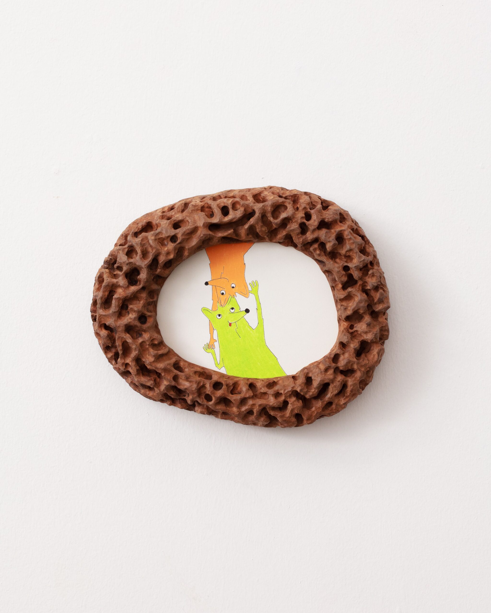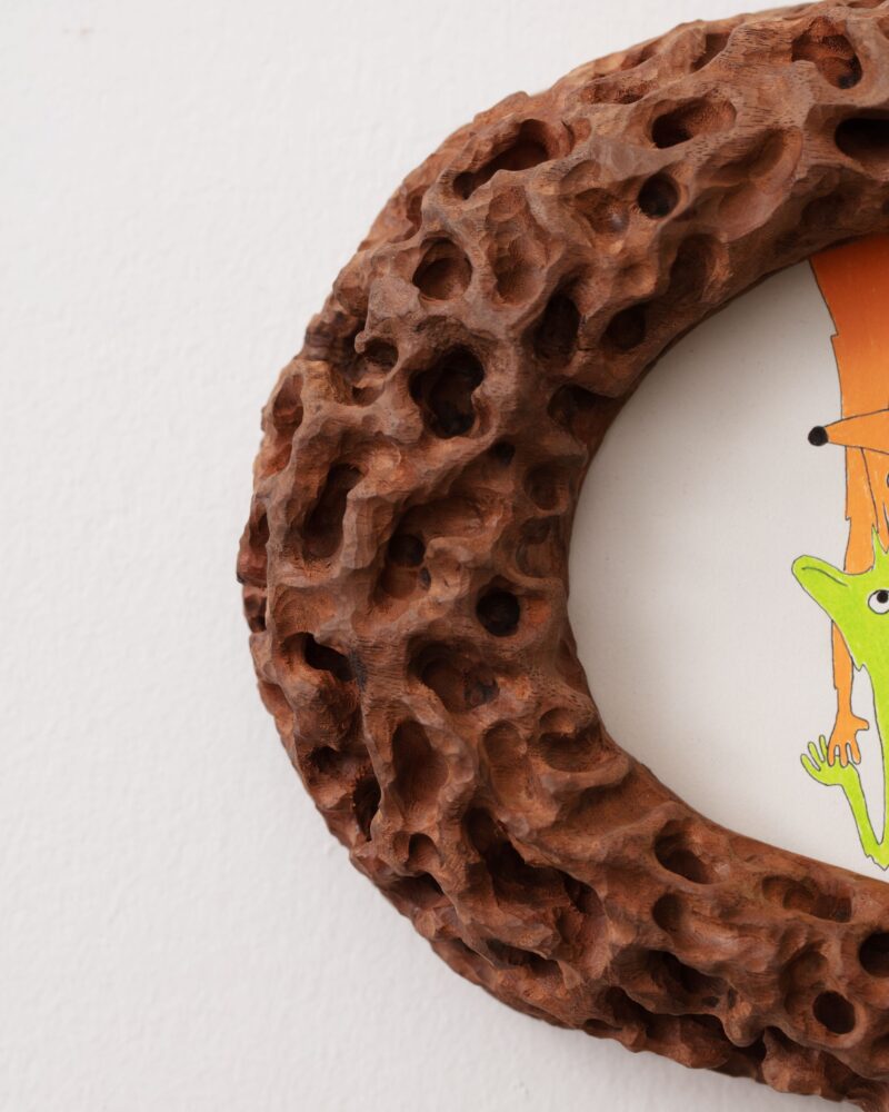 Paint and pen on plywood with walnut frame