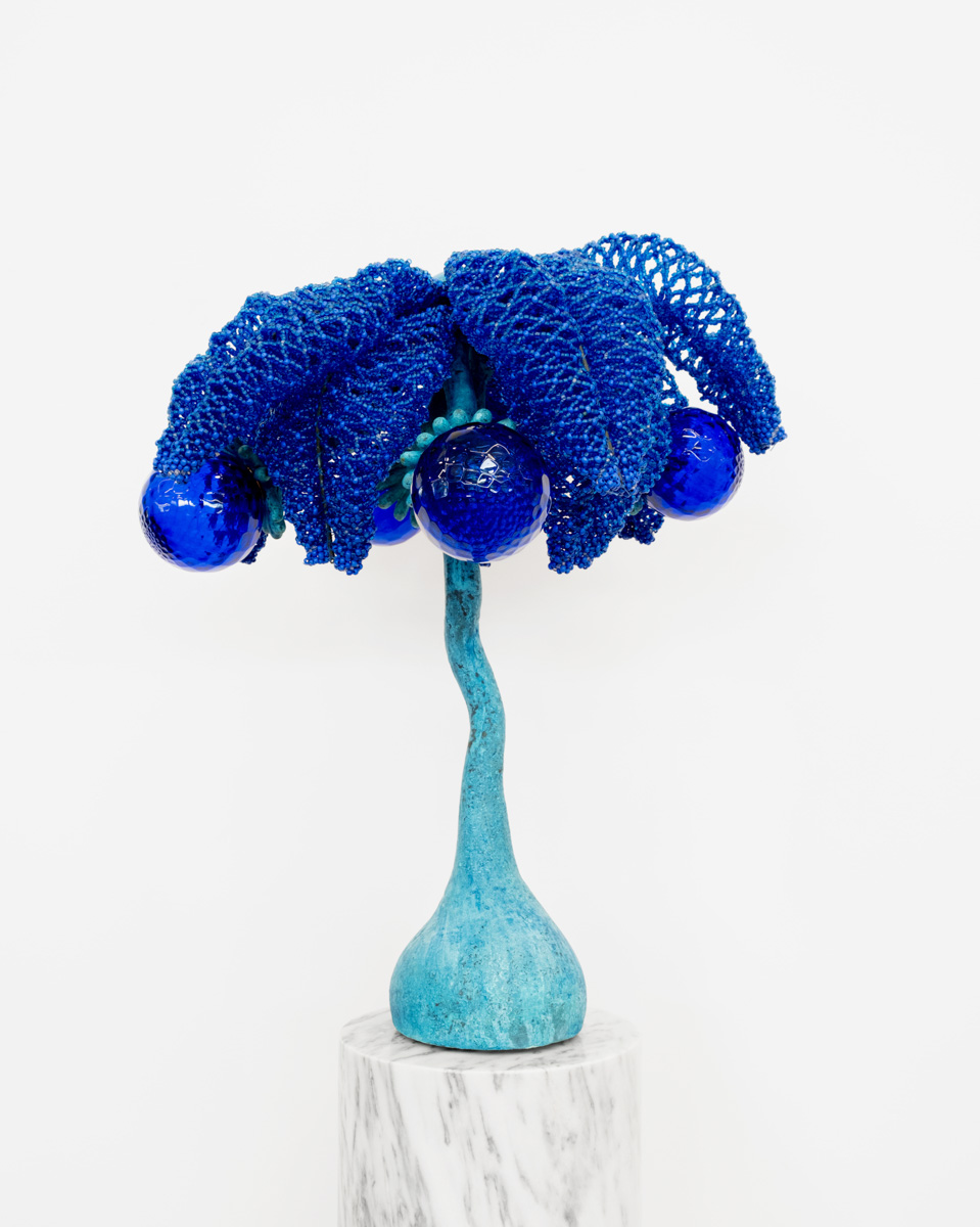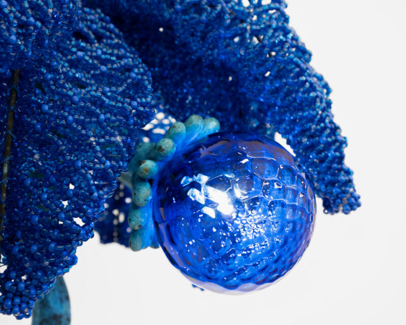Bronze, glass and beads