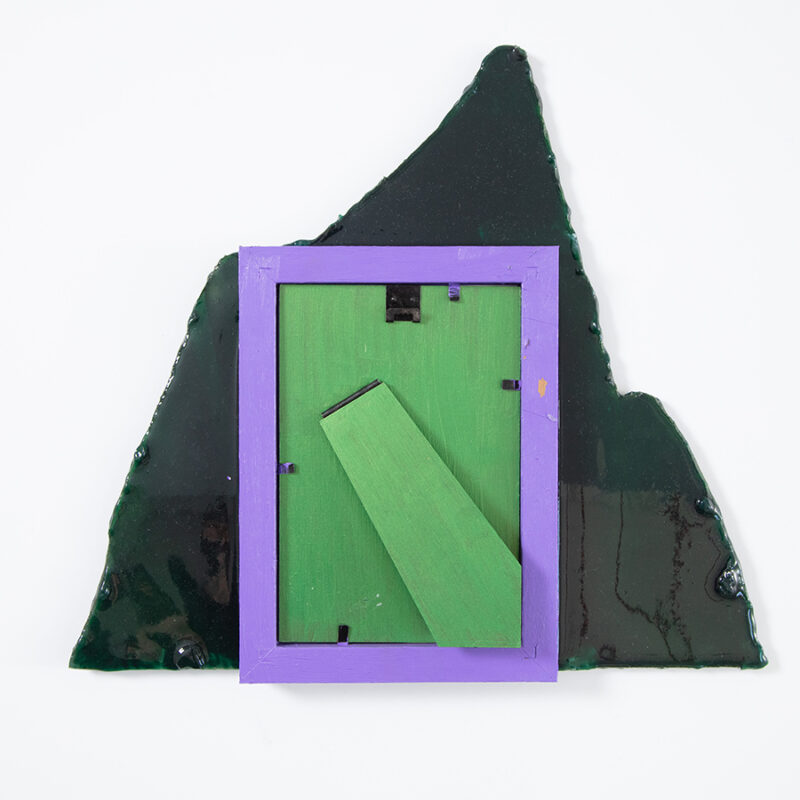Luam Melake. My Rock of Gibraltar. Ink on paper. 2024. Urethane, dyes, crushed granite, flocking fiber, acrylic paint, cardboard, wood and glass picture frame.